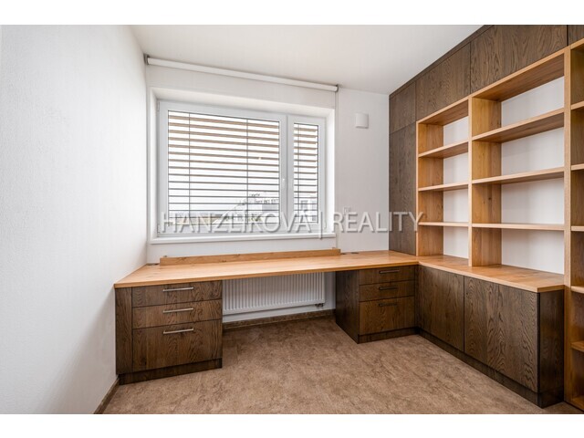 Dispozice dále nabízí několik pokojů, ložnici, pracovnu se zabudovaným