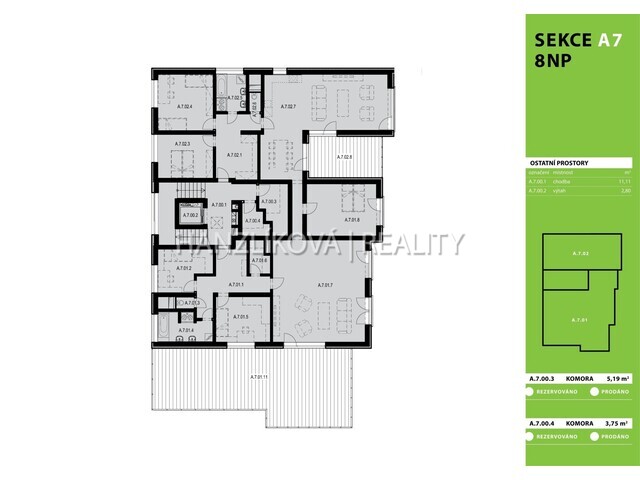 trezorem, dvě koupelny, dvě samostatné toalety a technickou místnost