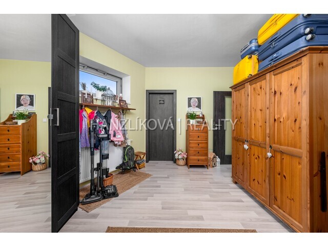 spotřebičů, , jídelní stůl, židle, sedací souprava, skříně. Dům je