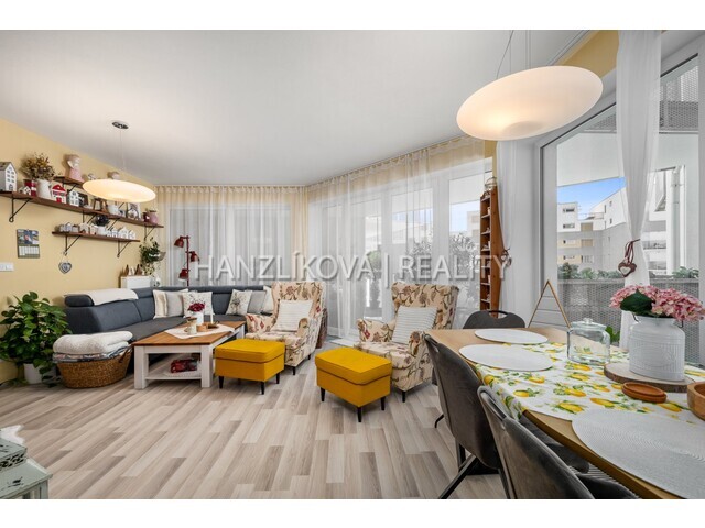 a prostorného obývacího pokoje s kuchyní a jídelnou. Byt je orientovaných