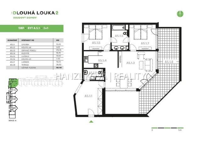 Prodej nadstandardního bytu 3+1 v 5.NP s terasou, byt A.5.1, rezidence DLOUHÁ LOUKA 2.etapa