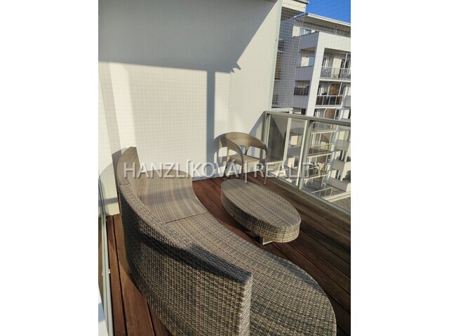 na východ s výhledem na řeku a na město. Byt je kompletně vybaven viz