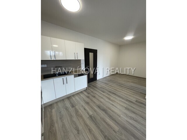 Byt nabízí komfortní dispozici – obývací pokoj s kuchyňským koutem,