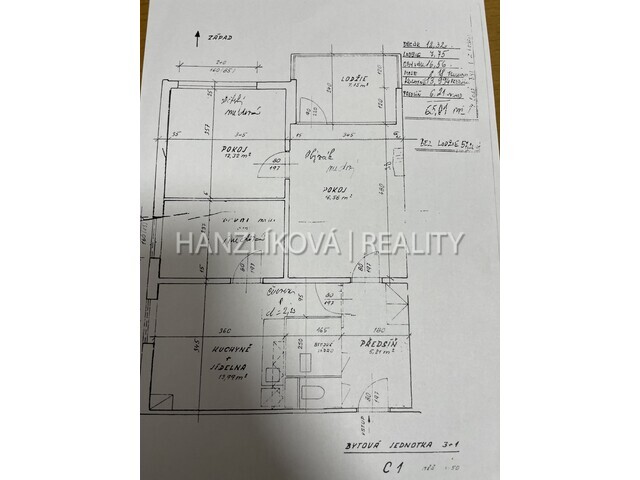 Byt o výměře cca 74 m2 se nachází ve 1. NP a skládá se z: předsíně,